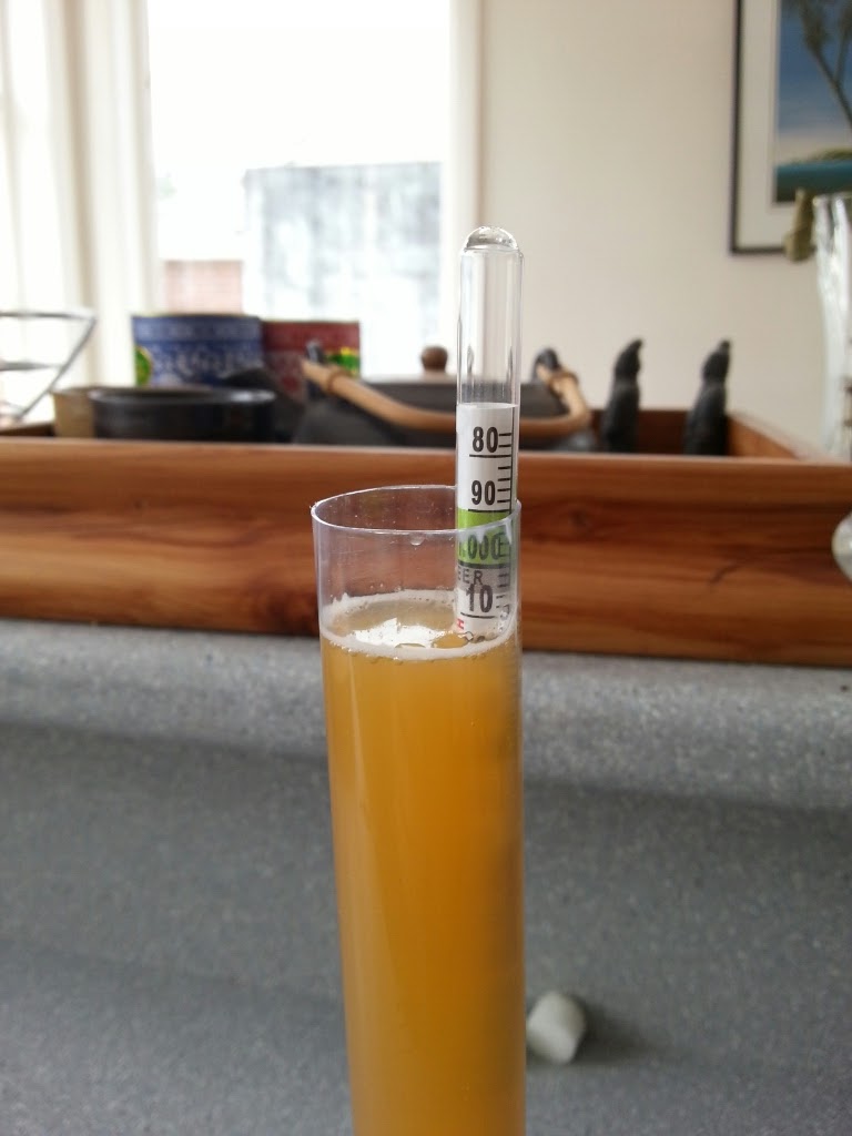 As I said I really needed to have a good look at the hydrometer and work out what I was actually measuring. As it turns out I had missed a great big 1.000 at the top. So when I was saying I was measuring 112 I was actually measuring 1.012. Phew, that was what I was aiming for. Today's measurement is 1.011. Looking pretty good and on track to bottle soon.