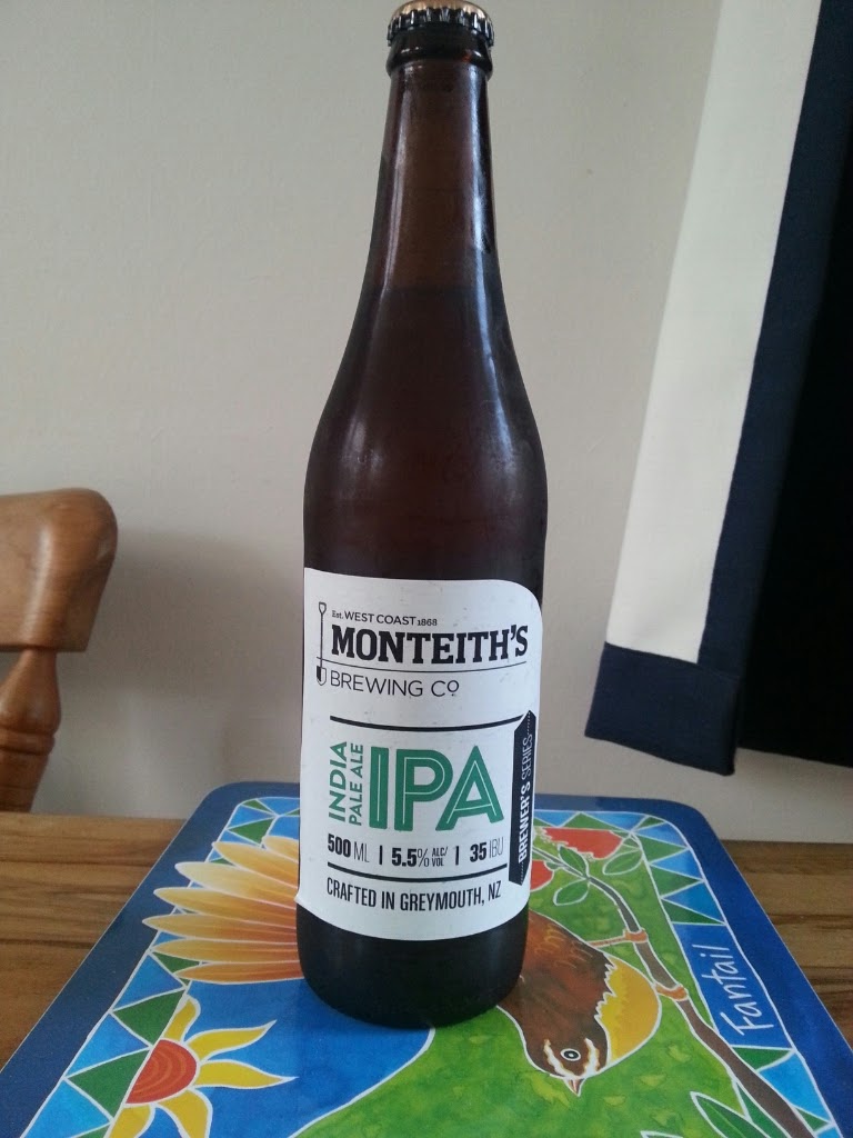 For many years Monteiths led the way in terms of making interesting beer in New Zealand that you could still buy. Appreciate they are no longer an independent brewery, being owned by DB, but that doesn't mean they can't make good beer. They now have their Brewers Series to tap into that craft market, so I thought I would go for a good standard against which to measure, their Indian Pale Ale. They market it as being very malty and having a high hop content.