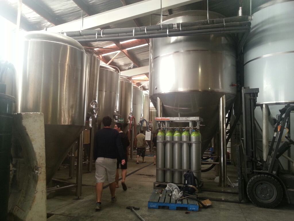 That was the right amount of time to finish our pints before making our way out the back to where all the magic happens. It being the weekend there was no work underway but it meant we could comfortably walk through without getting in people's way. Fraser showed us how they make their mash, the tanks for brewing, the freezer where they keep a dizzying array of hops and the big bottling machine which filled, labelled and capped leaving the "Oompa Loompas" to fill the boxes at the end. He also revealed that they do some contract brewing for some of the smaller Wellington brewers, like Yeastie Boys.